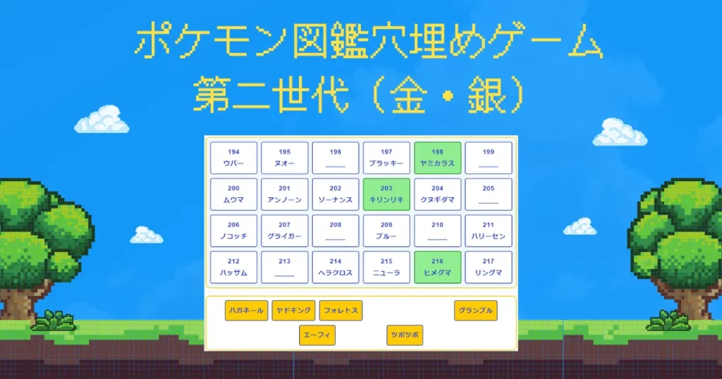 ポケモン図鑑穴埋めゲーム(第二世代)